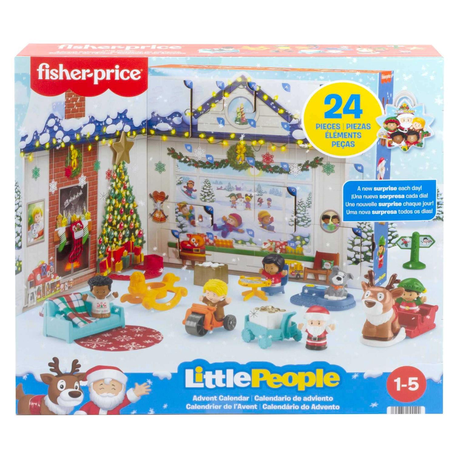 Playsets by Fisher-Price. Details:Keep the fun and excitement of the holiday season growing every day with the Little People Advent Calendar from Fisher-Price. Featuring 24 surprise figures and play pieces for kids to “unwrap” each day, this advent calendar opens like a book to set the scene for endless holiday-themed pretend play with a festive living room scene complete with a cozy fireplace and Christmas tree. By Christmas Day, little ones will have a full set of Little People friends and holiday-themed play pieces to create their own festive scenes with Santa, his elves, and more!