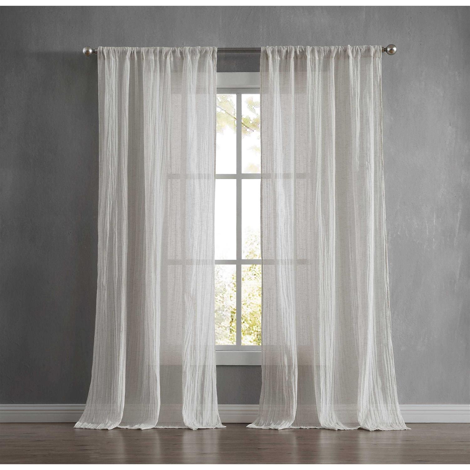 French Connection Charter 50 in. x 63 in. Rod Picket Light Filtering Sheer Window Panel in Crushed Natural (Set of 2 Panels)