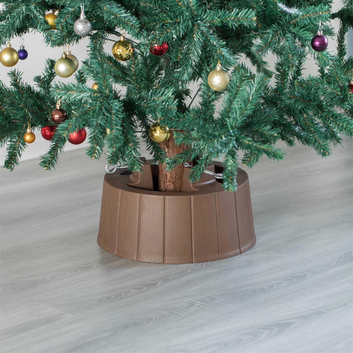 Gardenised Brown Plastic Christmas Tree Stand with Screw Fastener