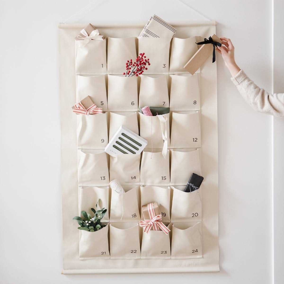 Our minimalist take on a beloved tradition. Fill its 4×4″ pockets with gifts, candy, ornaments, and more as you countdown to Christmas. Measures 21×36”.
