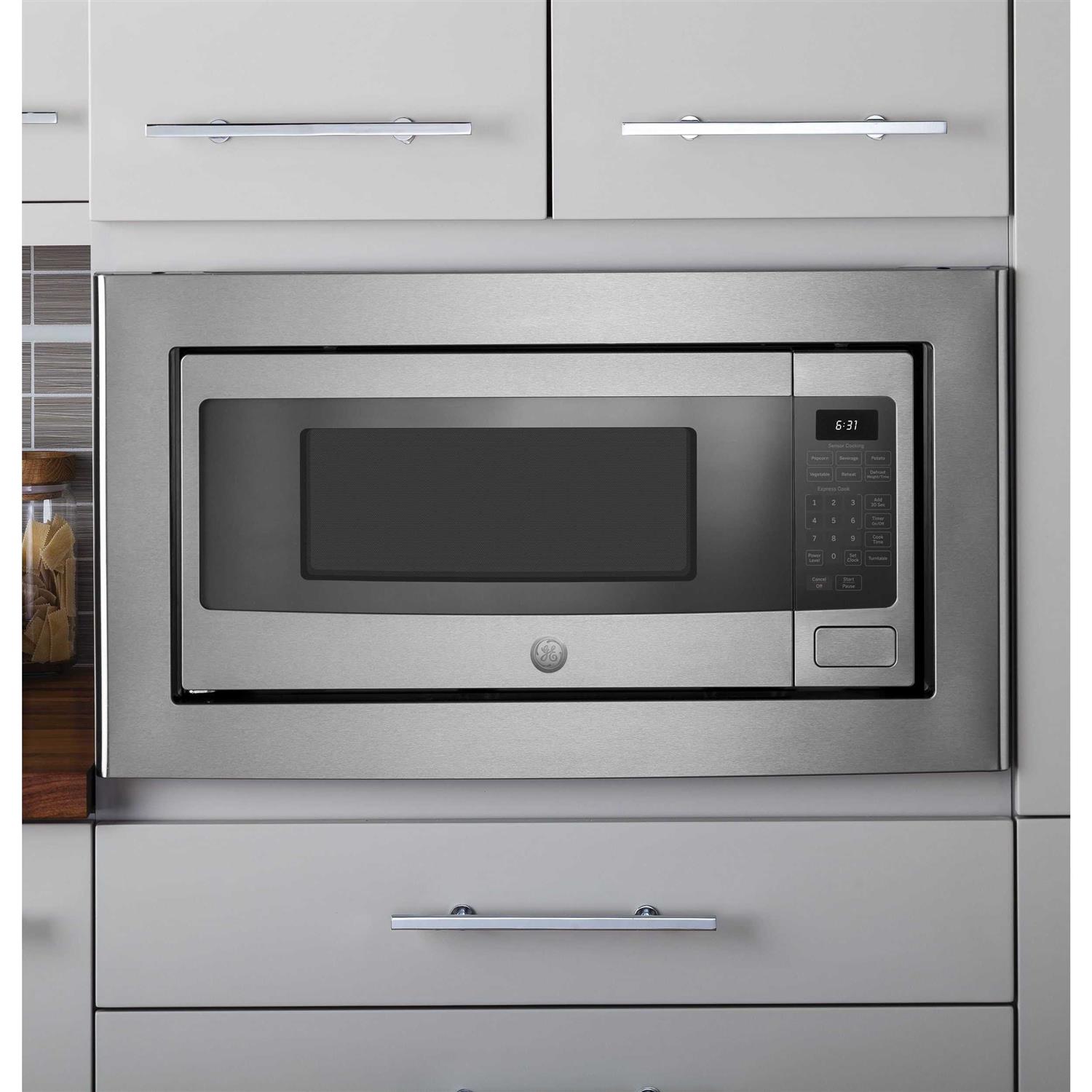 The GE Profile Series PEM31SFSS countertop microwave oven is designed to make cooking fast and easy! Sensor cooking controls take all the guesswork out of microwave cooking by automatically adjusting time and power settings. A special defrost setting automatically calculates optimal defrost time by weight, or you can set your own desired defrost time. There’s a handy one-touch button that adds 30 seconds of cooking time, and an on/off switch for the oven’s turntable. This 1.1 cu. ft. stainless GE Profile Series PEM31SF microwave has an optional built-in trim kit can give you a custom appearance and the convenience of a built-in. Use the optional hanging kit to free up counter space in your kitchen.