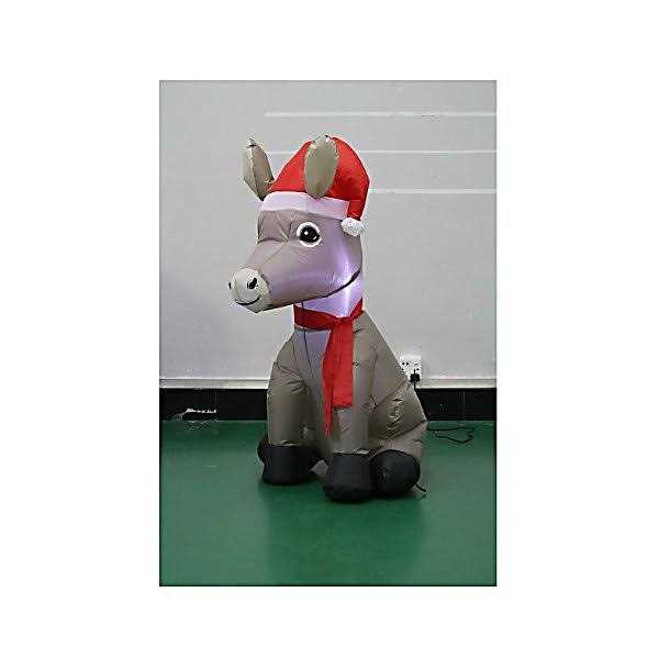 3.5ft Tall Airblown-Donkey, LED light, Adaptor power,for outdoor use. Setup is super simple. Just plug them in, stake them down and watch the magic unfold. Display these Christmas inflatables as a standalone or combine them with other Airblown Inflatables to create a custom scene.