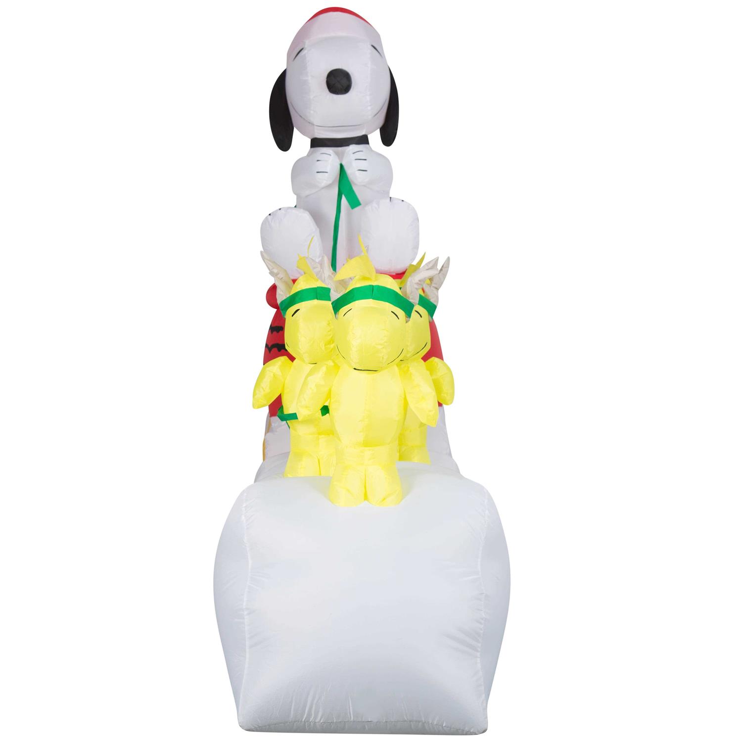 Gemmy Christmas Airblown Inflatable Snoopy in Dog Bowl Sleigh w/Woodstocks Scene Peanuts