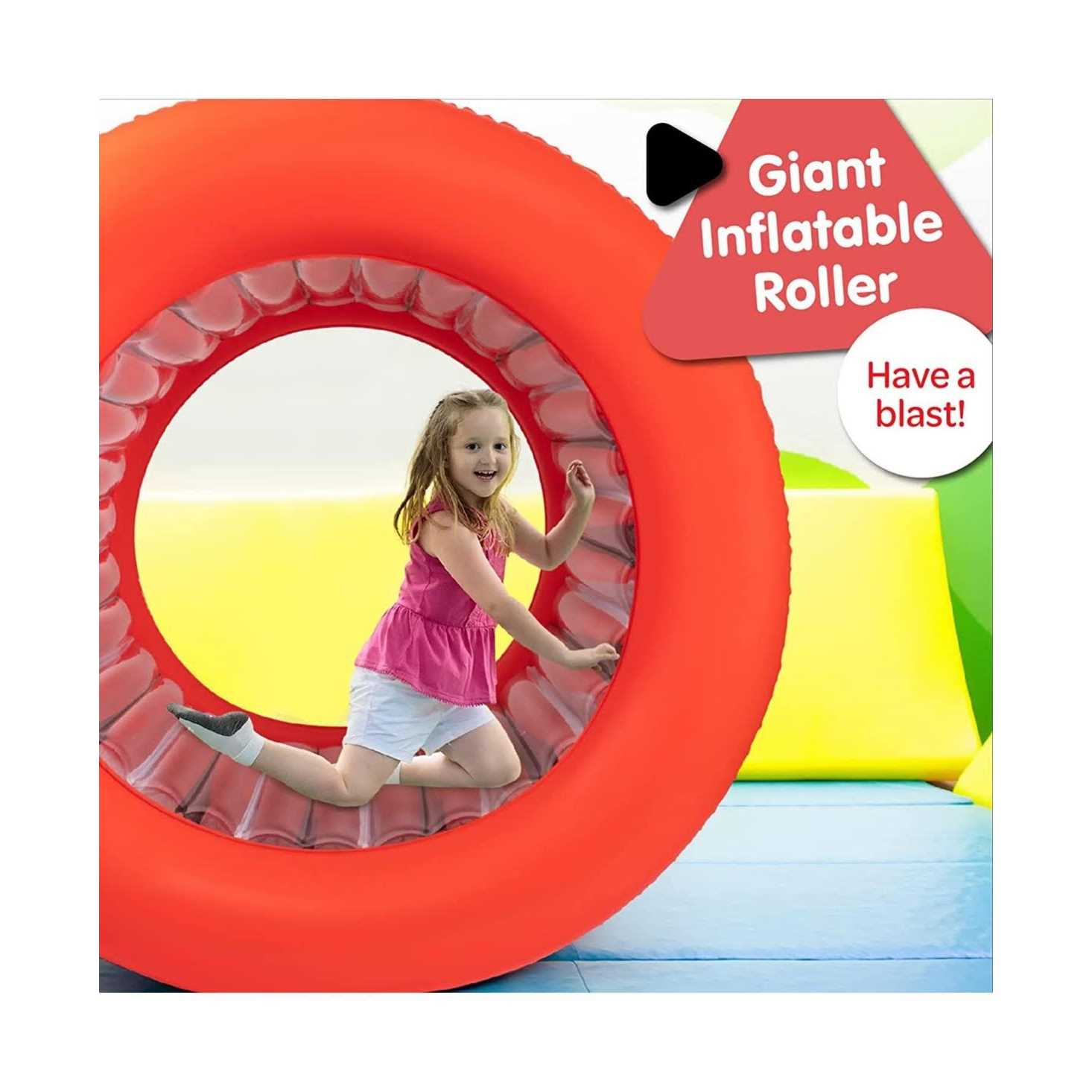 Roll Around: This giant Inflatable Fun Roller Wheel is made for kids and even an adult can fit (not standing up), use it to play games, interact with your families, or simply let your kids roll around in your backyard. Diameter: 65 inches.