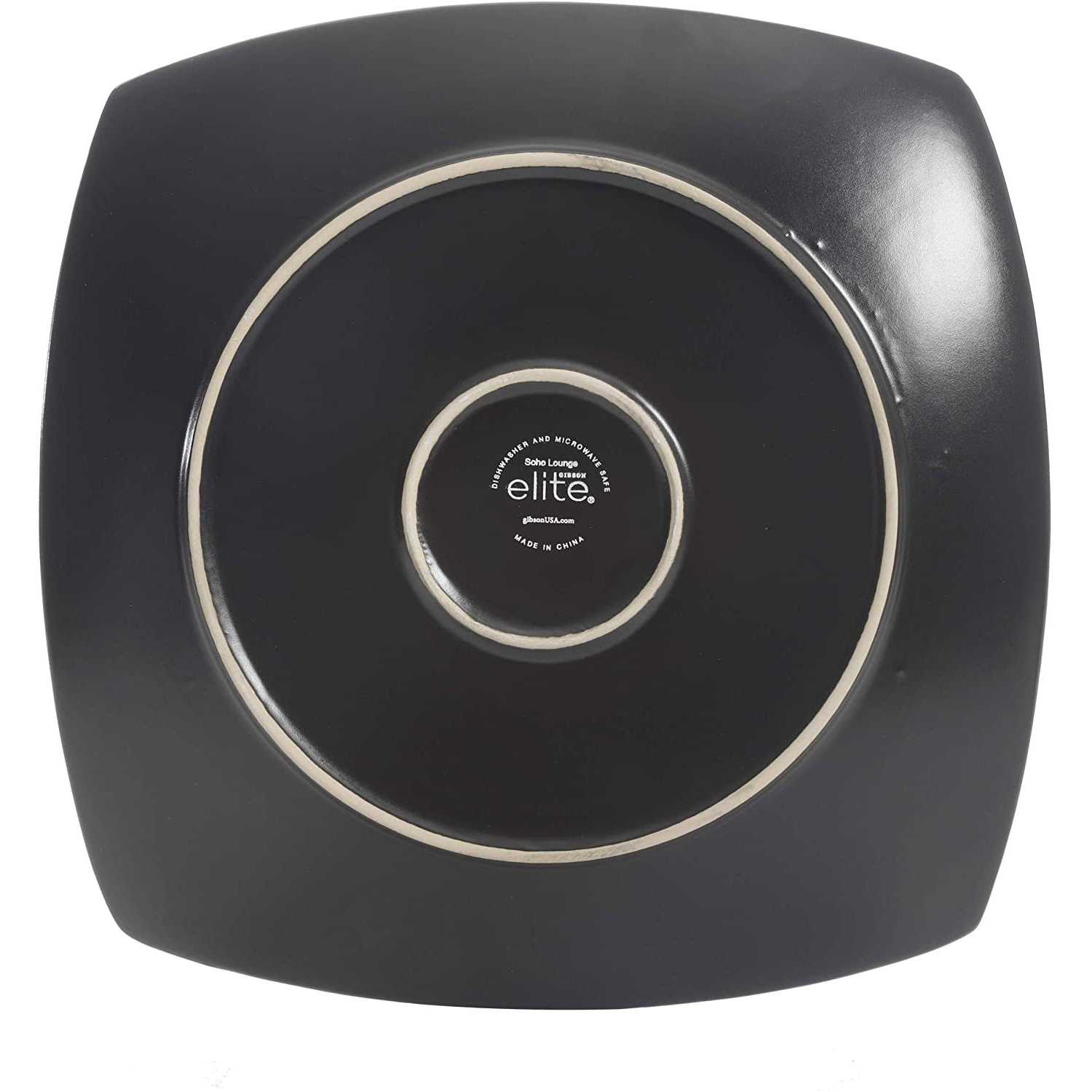 Gibson award winning Soho Lounge matte dinnerware set features classic stoneware dinnerware. The set has a dark exterior and is made from a ceramic material with a modern design With simplistic yet elegant lines. Durable thick dinnerware is difficult to scratch or break. 5-Inch dinner plate, 7. 75-Inch dessert plate, 6. 25-Inch bowl and 14. 5 Ounce mug (plates and bowls measured diagonally). bold designs for the bold at heart. Traditional finishing techniques produce differences in color, Size and texture, ensuring no two pieces are exactly alike. Set is dishwasher and microwave safe for easy cleaning.