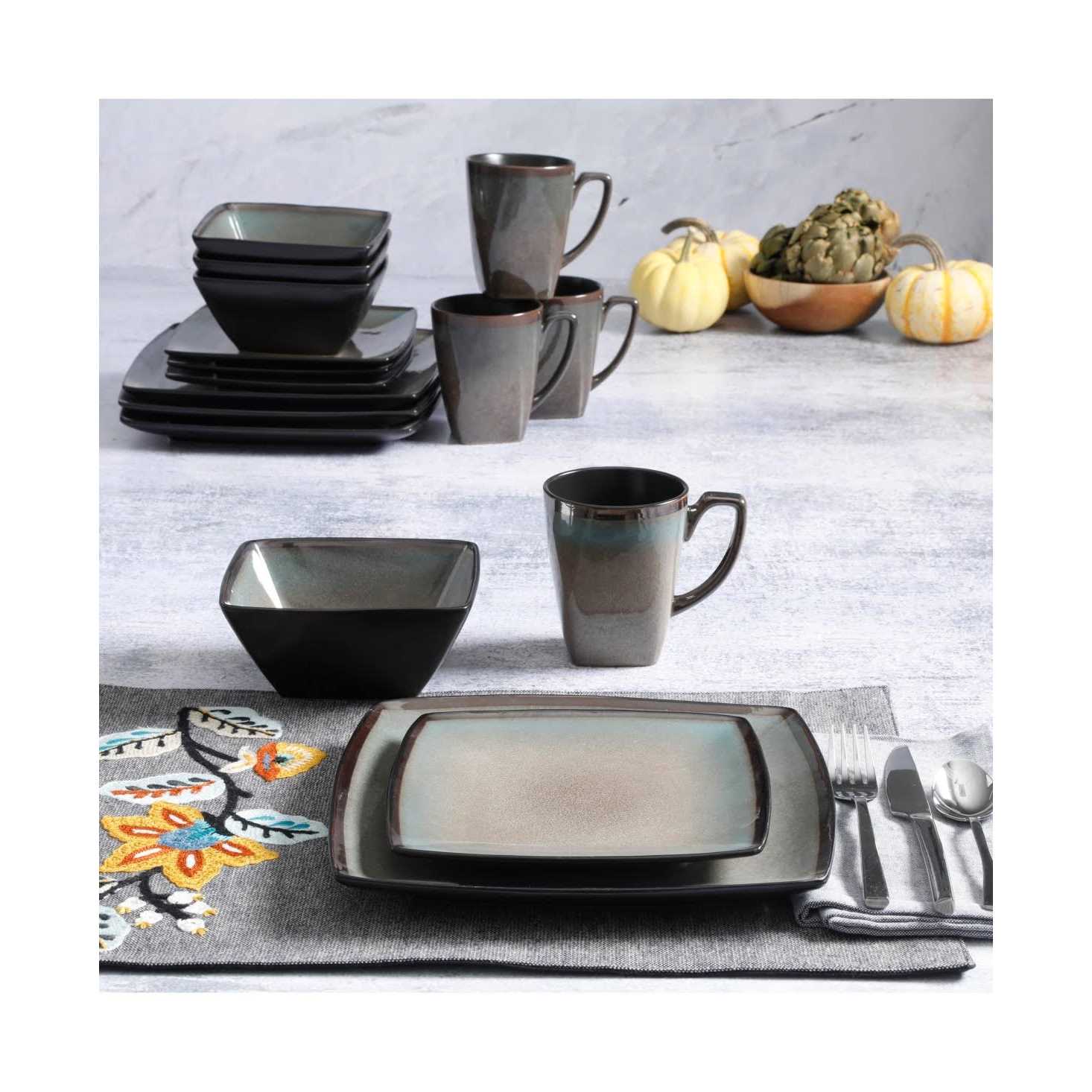 Gibson Elite Tequesta 16 Piece Square Dinnerware Set – Taupe
