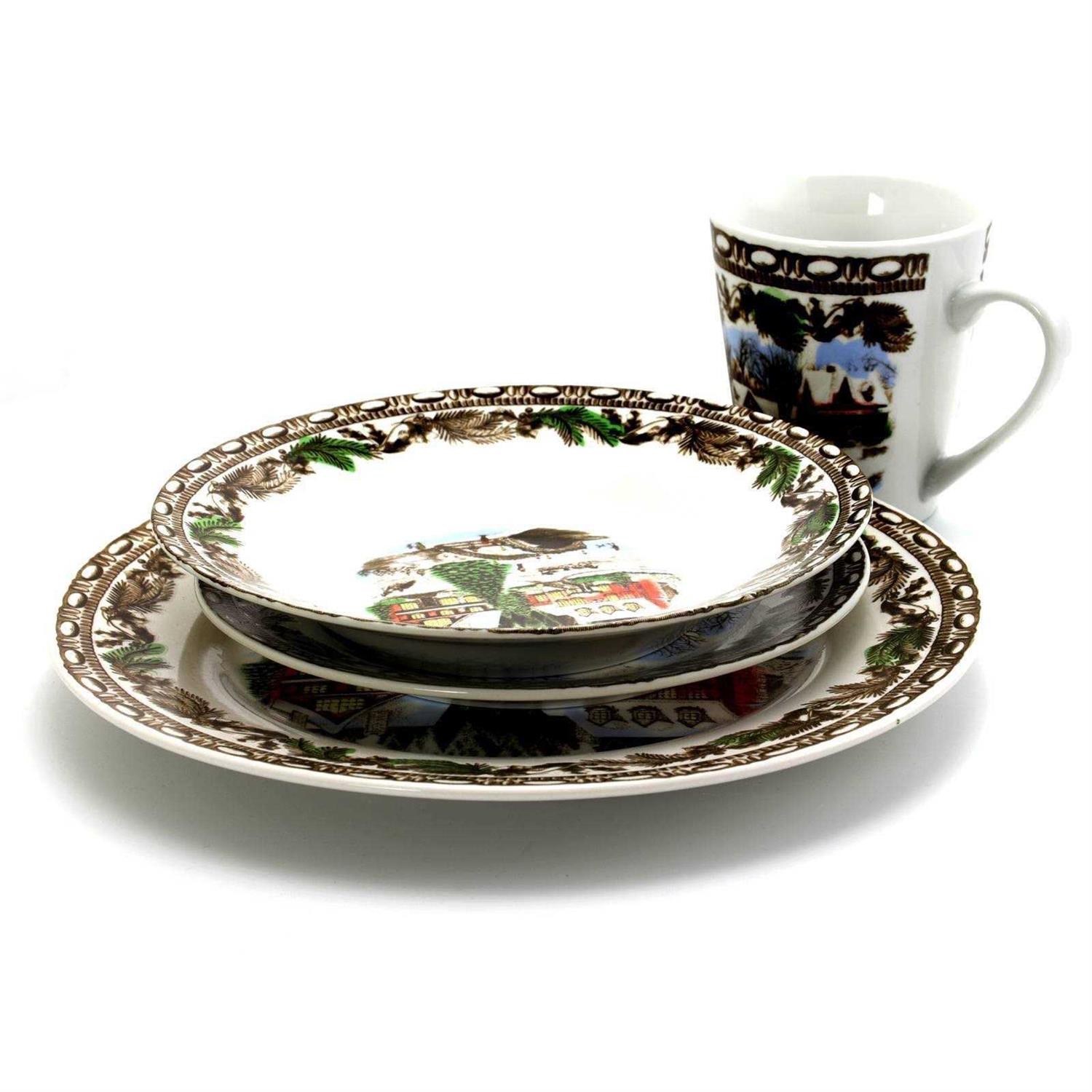 Gibson Home Christmas Toile 16 Piece Dinnerware Set