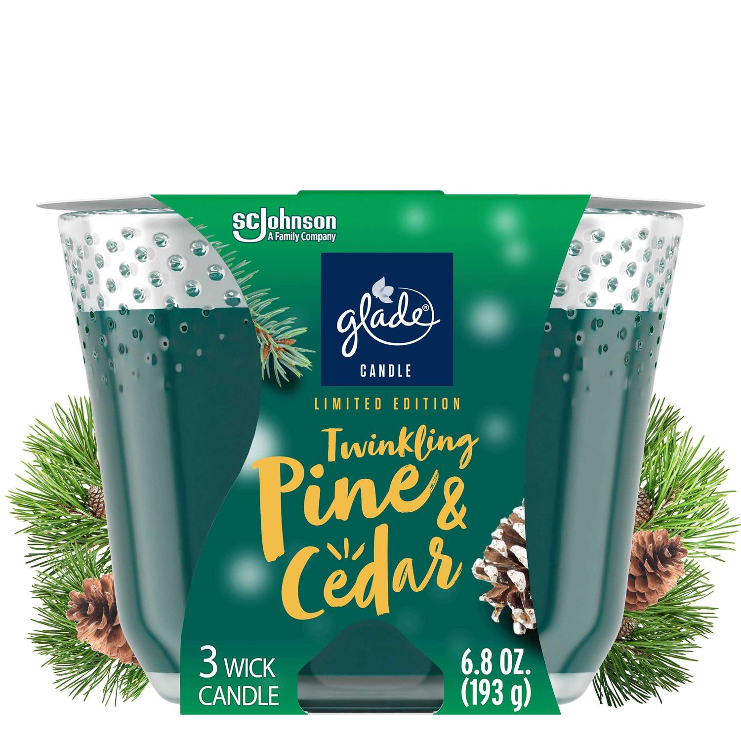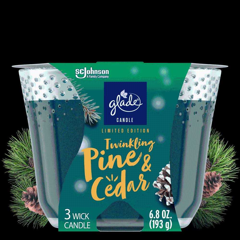 • Glow up the holidays with a Twinkling Pine & Cedar small candle, a limited edition scented candle from the Glade Holiday Glow Collection.