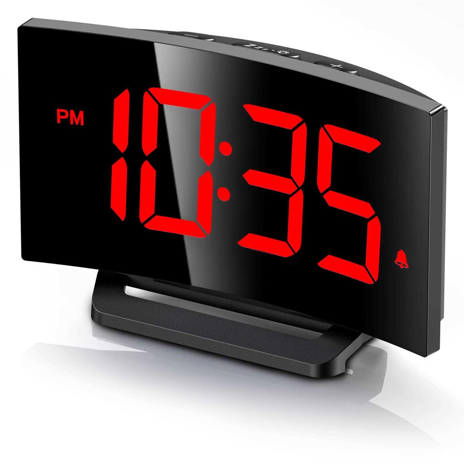Goloza Digital Alarm Clock for Bedroom, Digital Clock with Modern Curved Design, Conspicuous Red LED Numbers, 5 Levels Brightness+Off, 2 Volume, 3