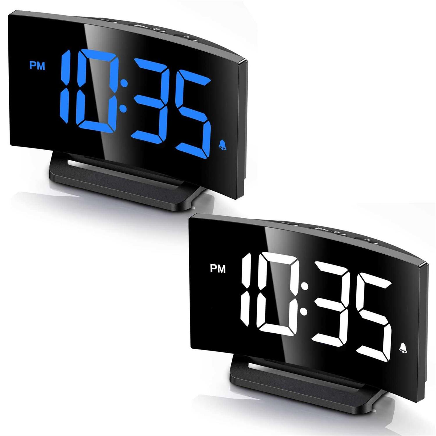 Goloza Digital Alarm Clock for Bedroom, Digital Clock with Modern Curved Design, Conspicuous LED Numbers, 5 Levels Brightness+Off,2 Volume, 3 Alarm