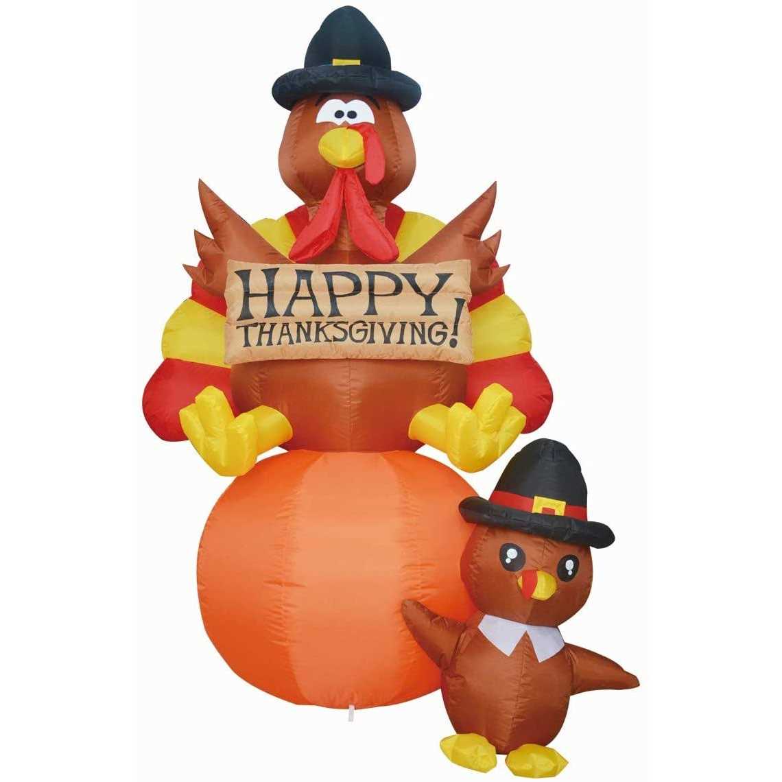 GOOSH 6 FT Height Thanksgiving Inflatables Turkey on Pumpkin & Little Turkey Blow Up Yard Decoration Clearance with Led Lights Built-in for Halloween