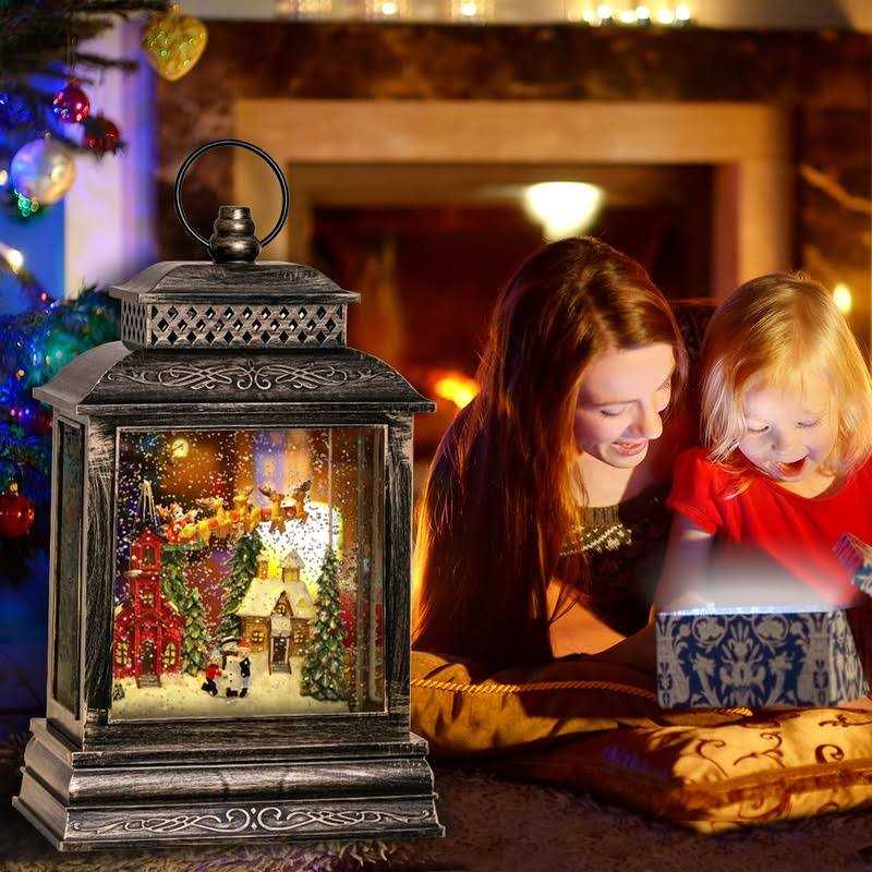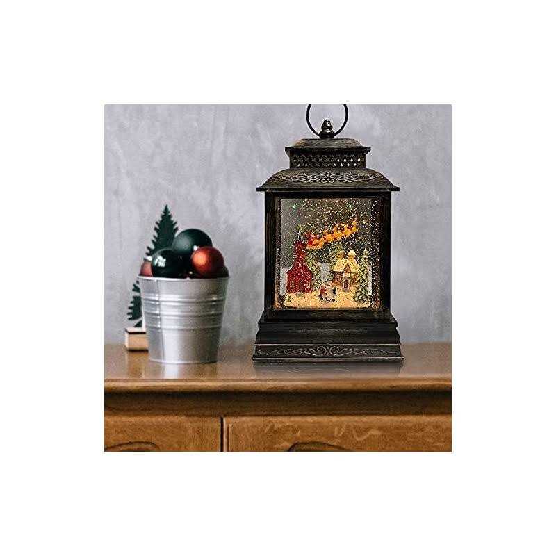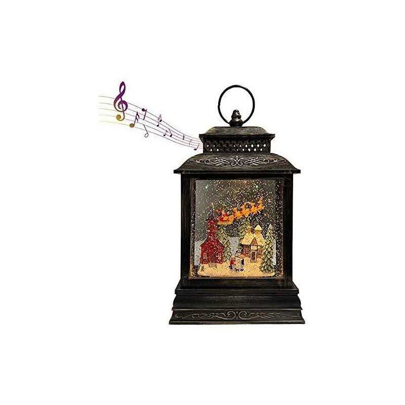 GOOSH Lighted Christmas Snow Globe Lantern Santa Rocking Chair Over The Town in Musical Decoration Gift with Battery Operated LED Water Glittering