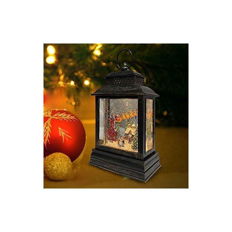 Goosh Christmas Snow Globe Lantern Water Glittering Reindeer Sleigh with Music