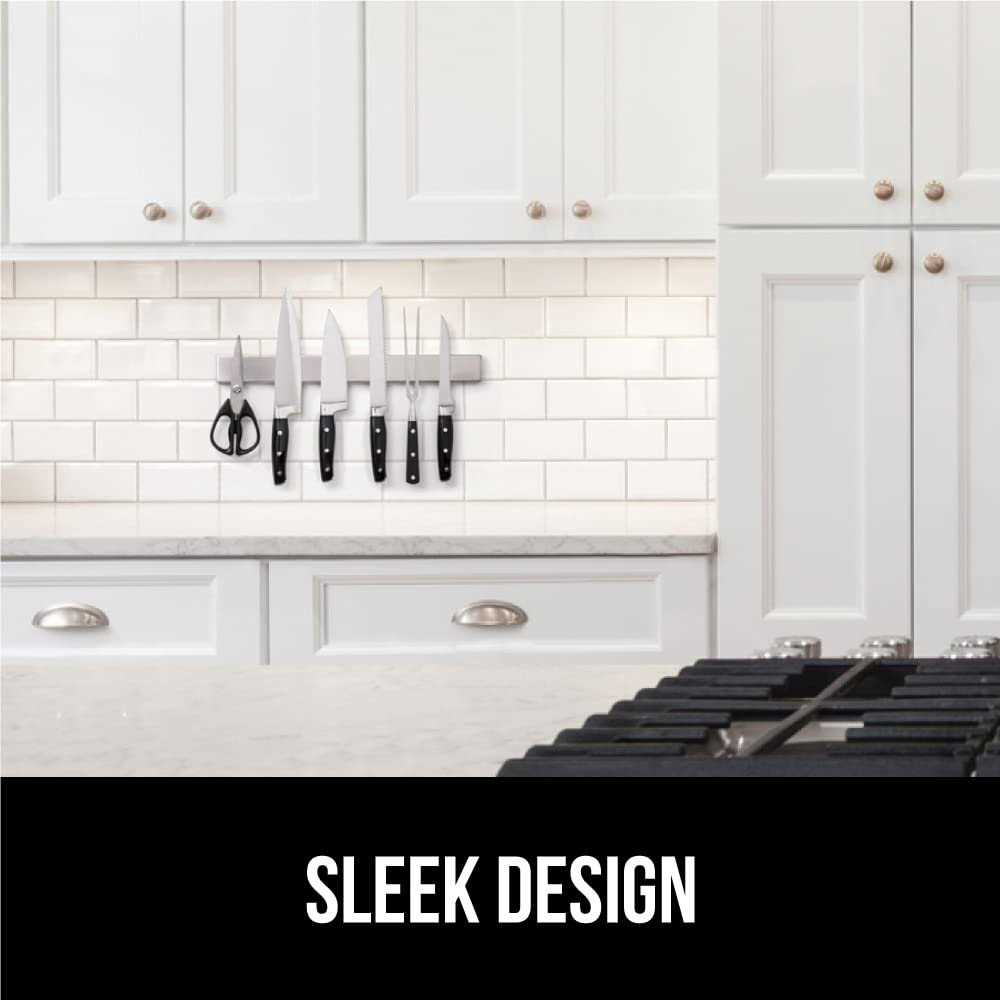 Gorilla Grip Stainless Steel Magnetic Knife Strip, 16 inch Holder, Heavy Duty, Wall Mounted Easy Install, Rust Resistant, Securely Store Knives on