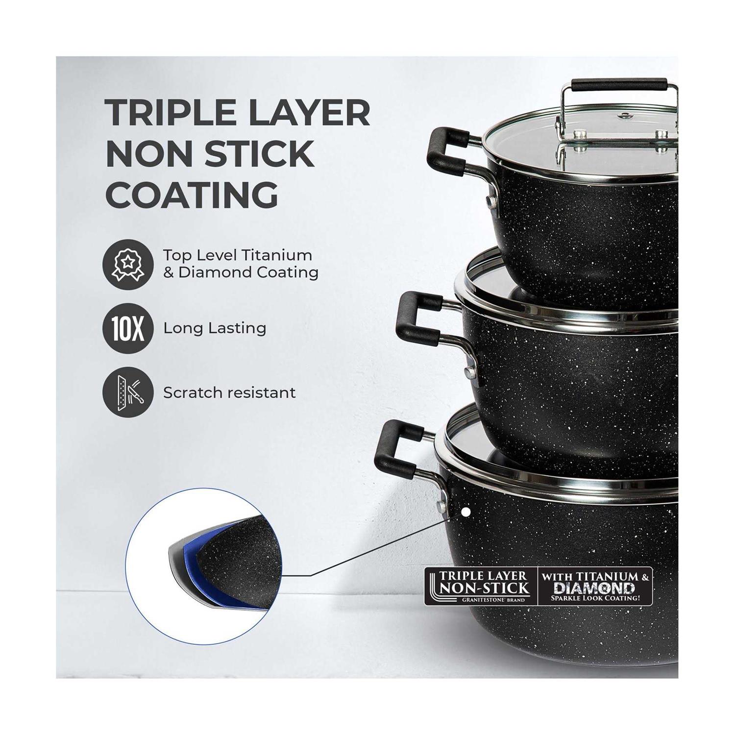 Granitestone – Black Non-Stick Aluminum 6-Piece Nesting Pot Set