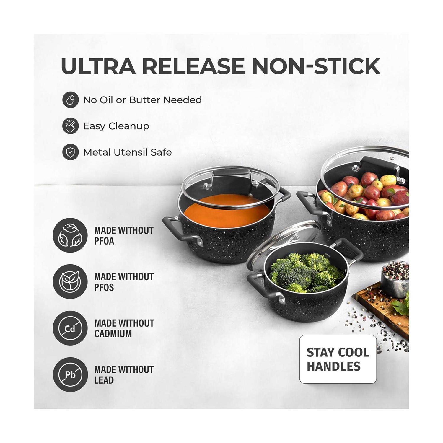 • NESTS FOR EASY STORAGE – these pots and lids nest together to save space in your kitchen and store easily and quickly