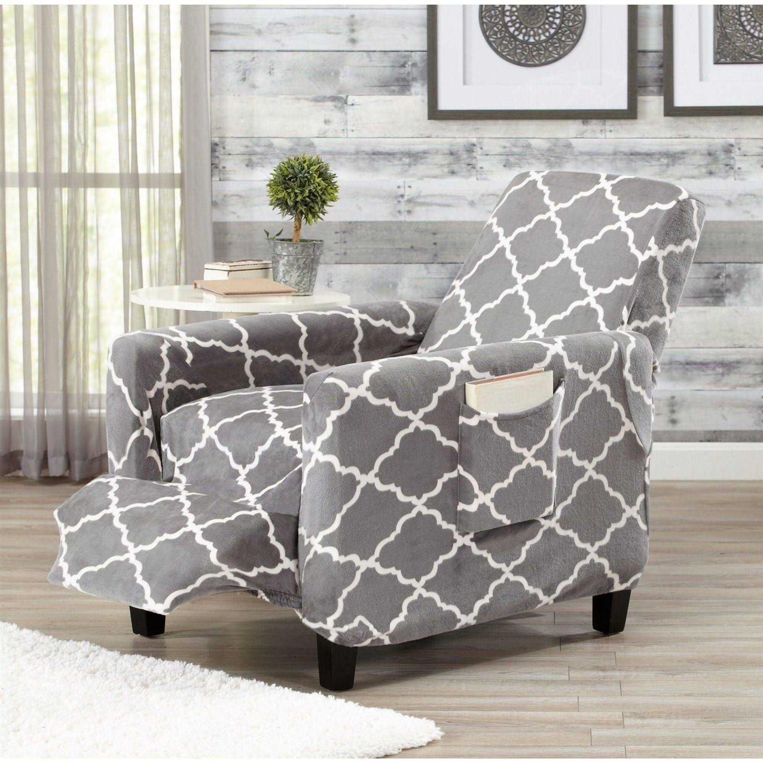 Great Bay Home Printed Velvet Plush Form Fit Stretch Recliner Slipcover Grey