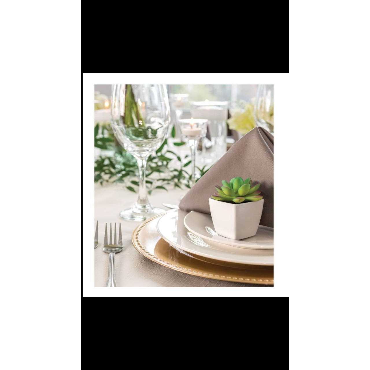 Item Package Quantity:4 Gorgeous 13 gold color polymeric material charger plate that is placed on top of during formal occasions choose from to match the dcor, mood, an style of your particular event such as: weddings, banquets, catered events, parties or in fine dining. Also known as under plates, service plates, chop plates. Charger plates create unique presentations for guests. The color of the plates may show small discoloration due painting process. Charger plates are merely decorative, and are not meant to come in direct contact with food. No dishwasher, microwave, or oven Safe.