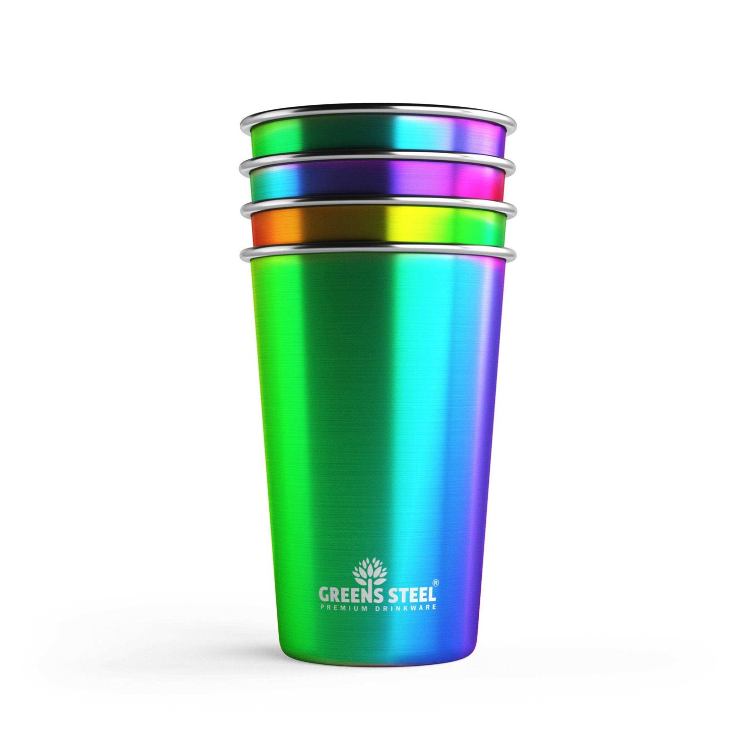 Stainless Steel Cups 16 oz Pint Tumbler 4 Pack – Premium Metal Drinking Glasses Stackable Durable Cup 16 oz Rainbow