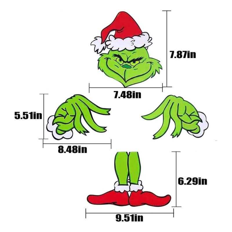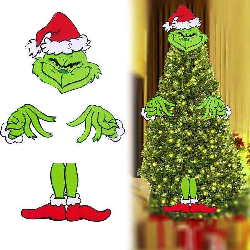 Grinchs Decor for Christmas Tree, Grinchs Christmas Tree Topper, Grinchs Christmas Decorations for Small Tree Hand +Head + Leg