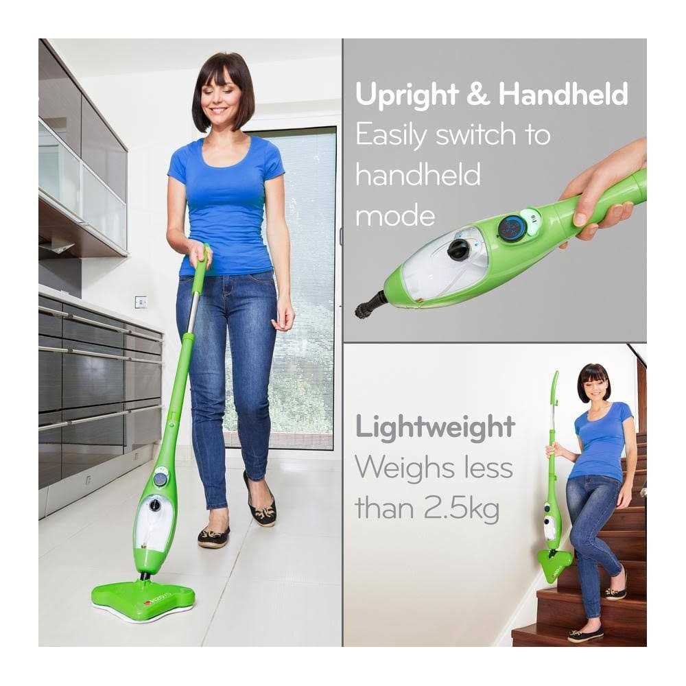 Product Description H2O X5 steam mop provides an adaptable, lightweight and fast way to clean and disinfect your home hygienically. It is non-toxic and eliminates the need for cleaning chemicals by heating up in just 15 seconds. It can sanitise and kill 99.9 Percentage of germs, viruses and bacteria from floors, surfaces and fabrics. It is easy to manoeuvre around your home and furniture with the swivel head and its light weight and handheld function make cleaning every surface simple, including those hard to reach places. With its variable steam setting it is suitable for hard sealed floors, slate, granite, marble, laminate, vinyl, linoleum, ceramic, wood and, using the included carpet glider, carpets.