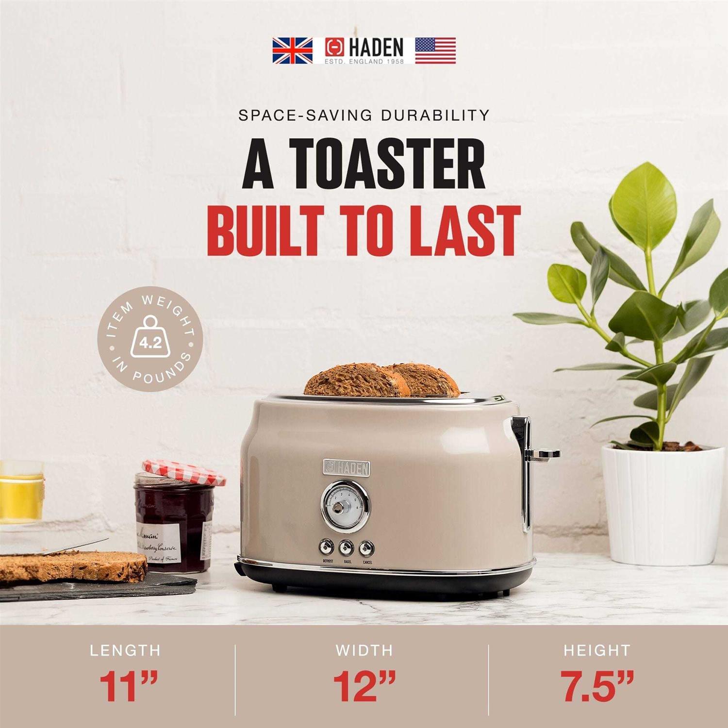 Haden Dorset 2 Slice, Wide Slot, Stainless Steel Toaster – Putty Beige