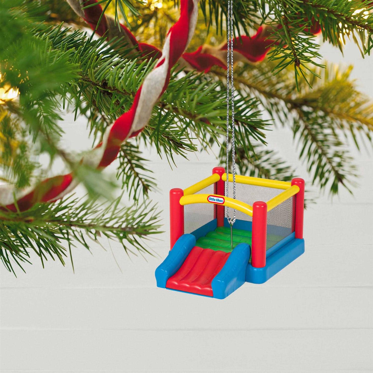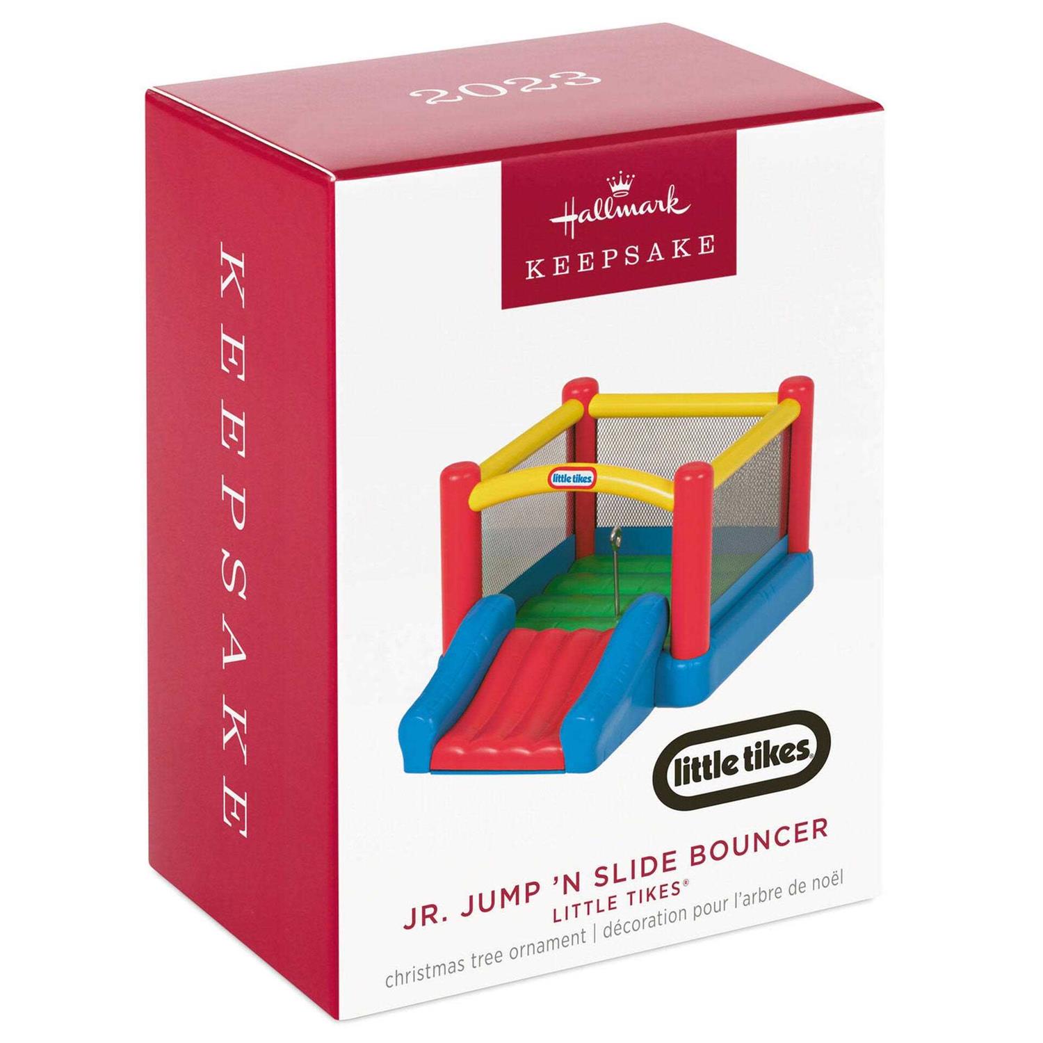 Bounce into holiday fun with this Little Tikes Jr. The colorful design is inspired by the classic inflatable playhouse. Plastic Christmas tree ornament measures approximately 2.41 x 1.75 x 3.56 Includes: One 2023 Keepsake Ornament in gift box for easy gift giving, preservation and storage. With unparalleled artistry and exceptional detail, Hallmark Keepsake Christmas ornaments are perfect for preserving precious memories, commemorating special milestones and celebrating individual hobbies and interests.