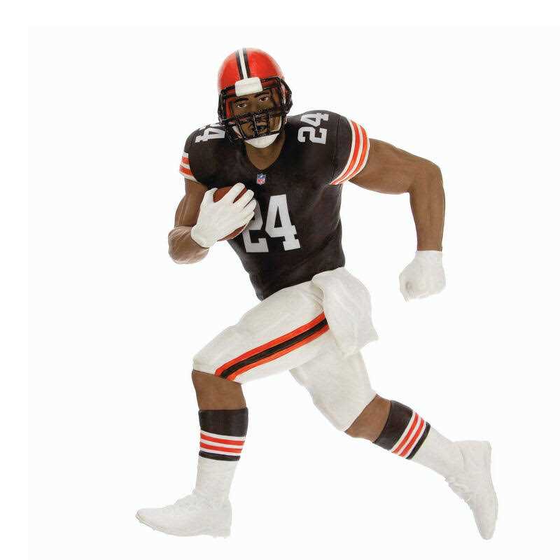 Cleveland Browns fans everywhere will rush to get their hands on this Nick Chubb Christmas tree ornament. With a detailed likeness, this decoration features the star running back on the move with the football tucked under his arm in an action-packed pose.