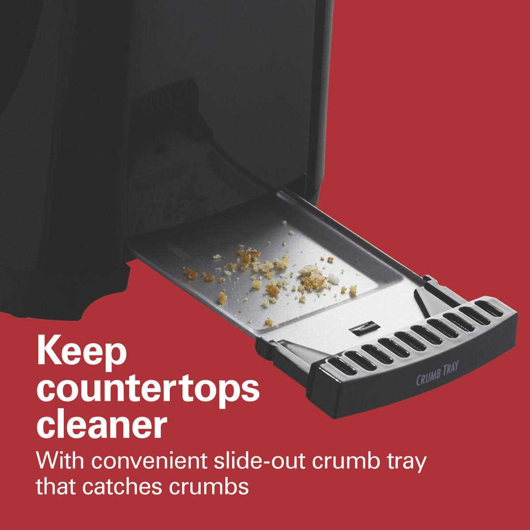 • Keep countertops clean, with slide-out crumb tray