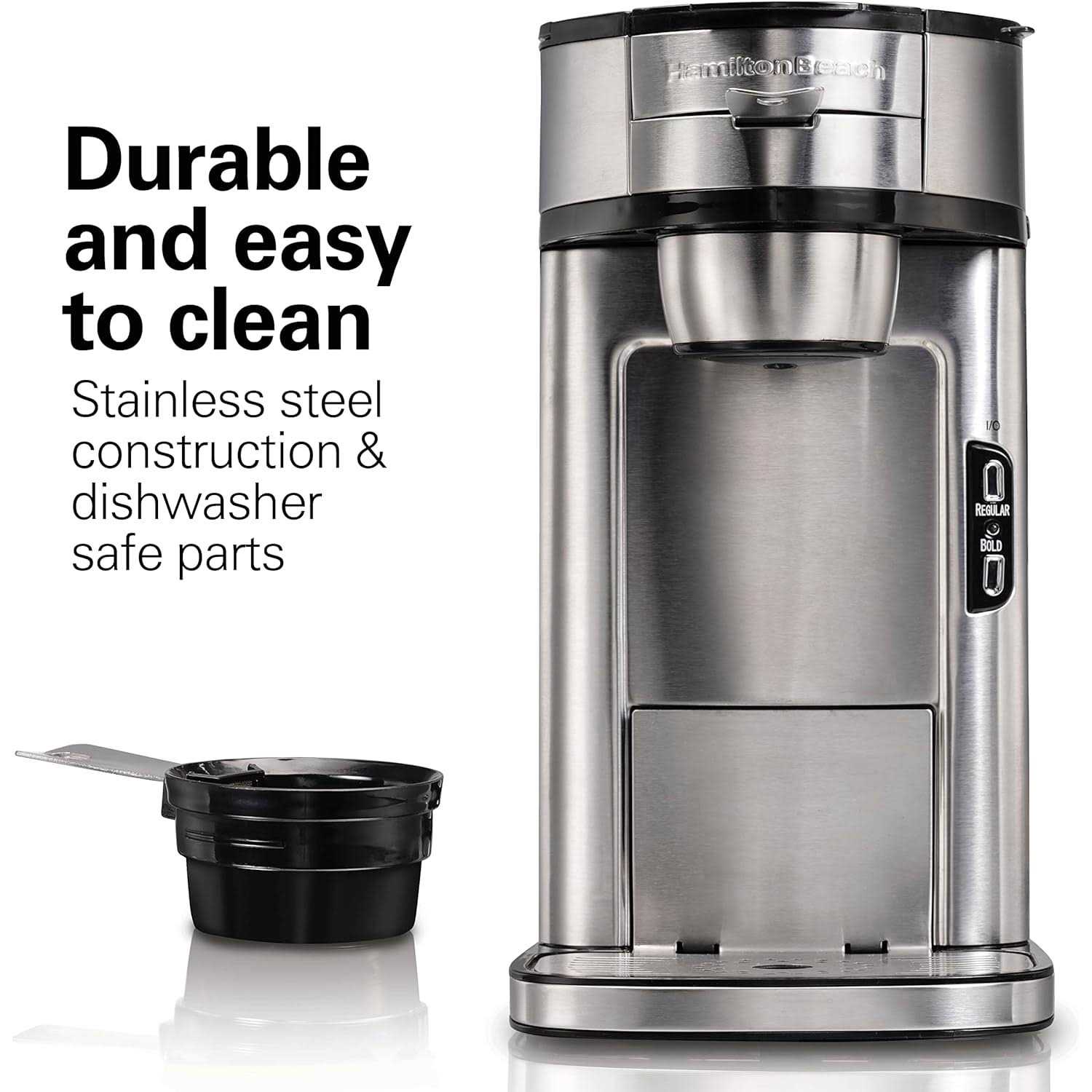 Hamilton Beach Scoop Single Serve Coffee Maker, Fast Brewing, Stainless Steel (49981A)