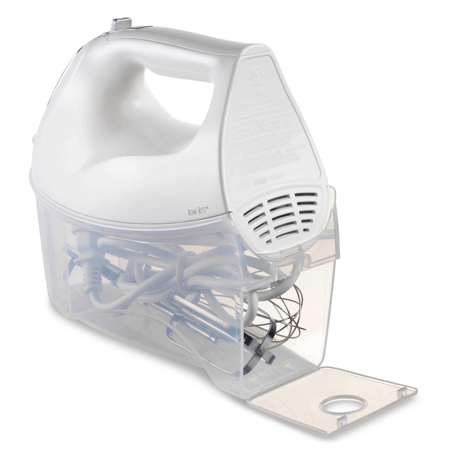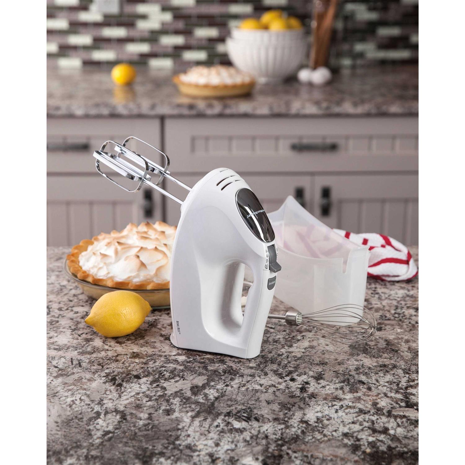 Make Baking a Breeze with the Hamilton Beach 62632R Hand Mixer w/Snap-On Case The Hamilton Beach Hand Mixer w/Snap-On Case makes whipping up delicious delicacies easier on you. Mix it up using the included 2 traditional beaters or gently combine ingredients with an included whisk. Select one of 6 different speeds to make sure your recipe turns out just right and take advantage of the QuickBurst feature to quickly switch between fast and slow speeds when you need to. Make cleanup easier on yourself with a slower initial speed so you don’t have to wipe down splattering all around the countertop. Enjoy up to 275 watts of mixing power to help your next delicious dish turn out perfectly.