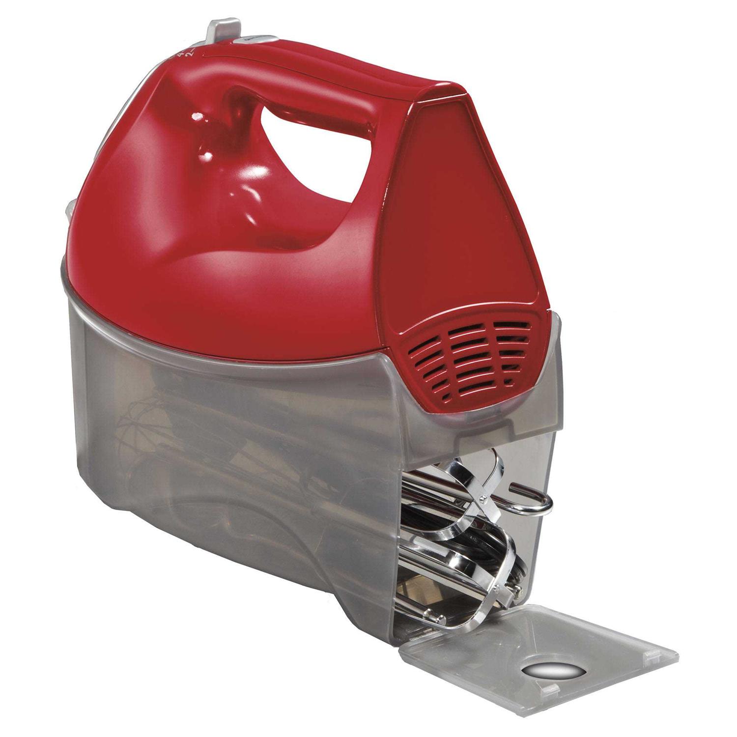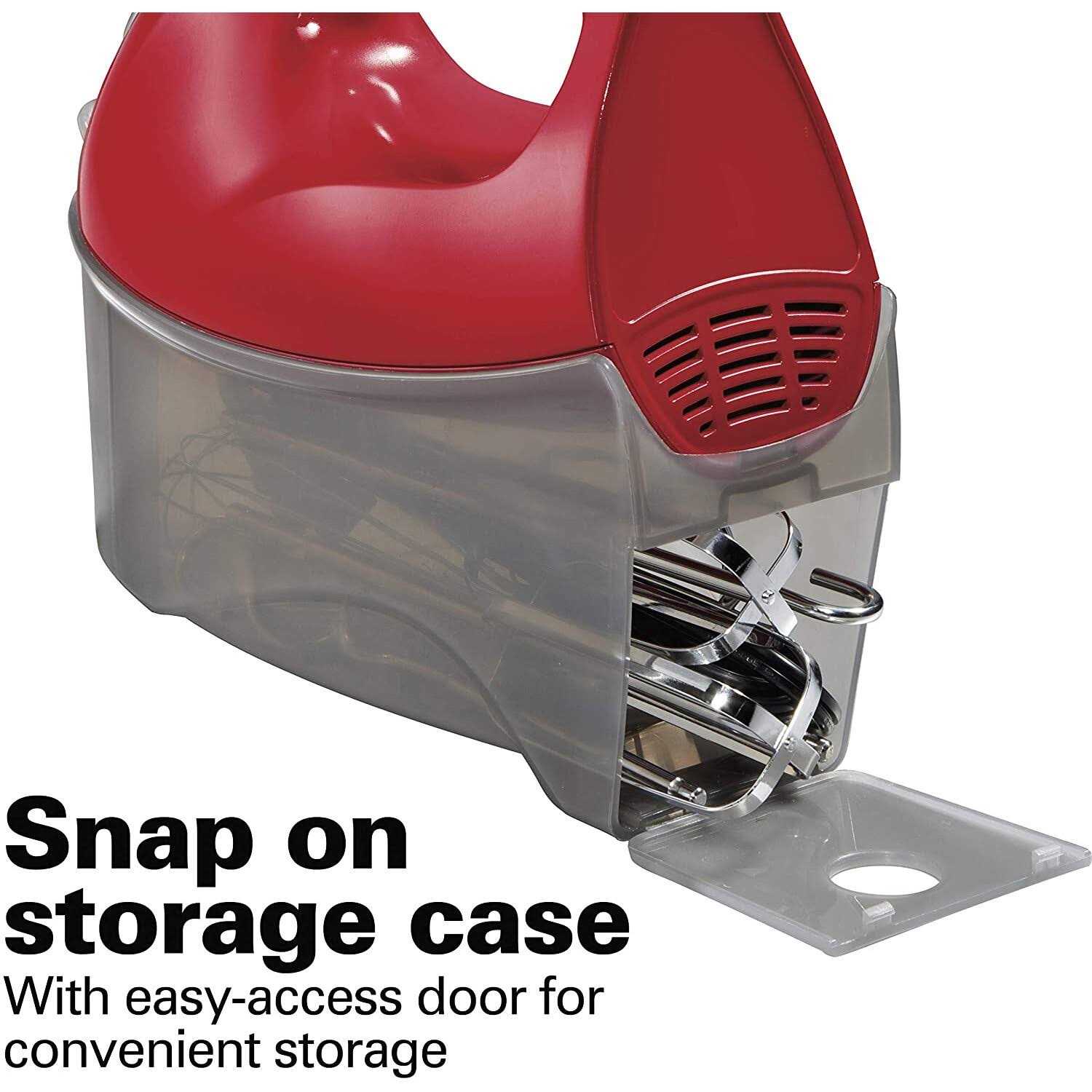 Hamilton Beach Hand Mixer with Snap-On Case – Red