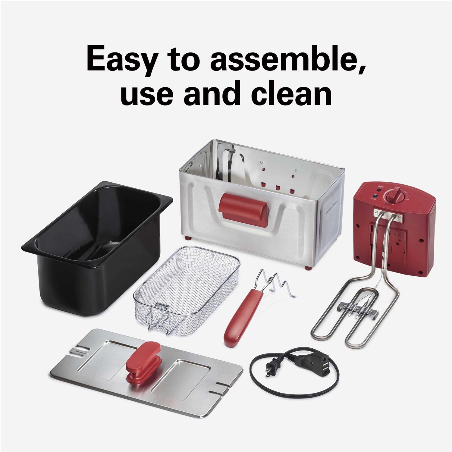 With the Hamilton Beach 8 Cup Deep Fryer, you can fry up to 6 cups of restaurant-quality chicken, fries or onion rings in the comfort of your own home. You’ll find it easy to use, even if you’ve never attempted to deep-fry food before. Simply preheat the oil until the green ready light comes on, fill the basket with food without overcrowding it, lower the basket into the oil and cover with the lid. When food is finished frying, hook the basket over the oil tank to easily remove excess oil from your food. For easy cleaning, the enamel-coated oil tank, cooking basket and lid are dishwasher safe. For added convenience when you’re frying, the magnetic cord easily detaches from the deep fryer to prevent tipping.