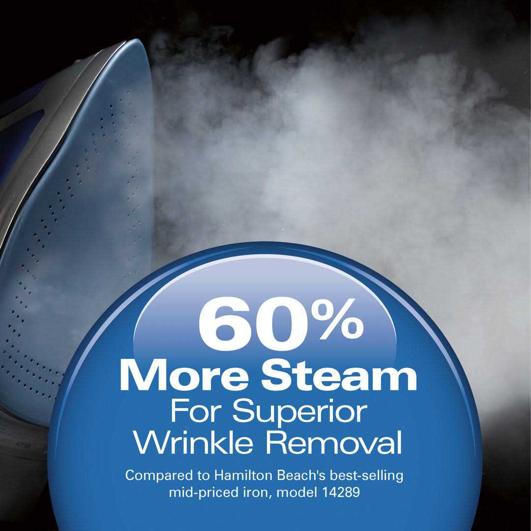 The Hamilton Beach Durathon Iron with non-stick soleplate delivers powerful steam performance, eliminating wrinkles fast whether you’re ironing a shirt for the office or putting the final touch on a creative project. Adjustable steam lets you choose the right steam level for every fabric including synthetics. The durable soleplate is wear-resistant and offers a smooth glide for fast ironing, making this household chore more pleasant. Keep the steam vents clear of any buildup by simply pressing the self-clean button. Anti-drip feature keeps water from leaking onto clothes when iron is on a low heat setting. Don’t want to take out the bulky ironing board? The convenient vertical steam feature allows you to remove wrinkles from clothes or draperies directly on the hanger. For peace of mind, the 3-way auto shut off automatically turns the iron off after 15 minutes if left in the upright position or after 30 seconds if left on its soleplate or on its side.
