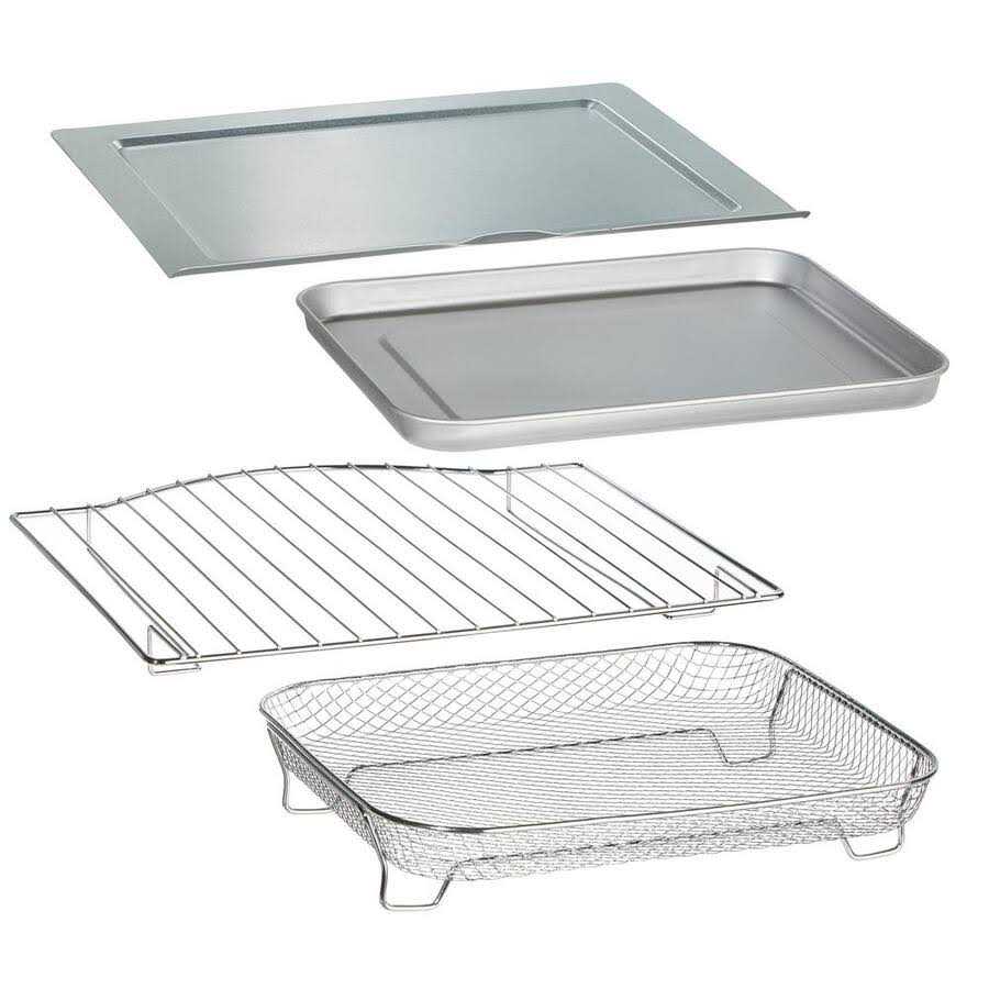 The Hamilton Beach Easy Reach Sure-Crisp Air Fryer Toaster Oven combines the convenience of our popular Easy Reach Toaster Oven with Sure-Crisp air frying functionality. You get the countertop cooking convenience you love in a toaster oven, plus the even crisping and browning of an air fryer. You can toast, bake, broil and air fry right on your countertop. Using little to no oil, our Sure-Crisp technology evenly cooks, browns and crisps all kinds of foods: fries, chicken wings, steaks, fish, vegetables, and more. The specially designed glass door makes it easy to add and remove foods from the oven, check foods as they’re cooking, and keeps the countertop free. There’s plenty of space too. This toaster oven fits 6 slices of toast, a 12 in. pizza, or a 9 in. x 11 in. baking pan. With 1400 watts of cooking power and 2 rack positions, the oven accommodates a variety of foods. It includes all the accessories you need to bake, broil, toast, and air fry. You get a metal mesh basket, bake pan, broil rack, and slide-out crumb tray. Other convenient features include auto shutoff, 30-minute timer, ready bell, and Stay On setting. Color: Grey.