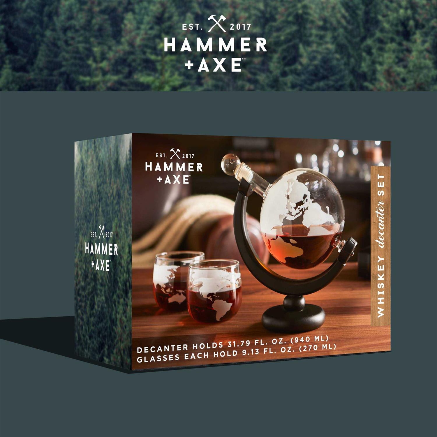 Hammer & Axe Globe-Shaped Whiskey Decanter Set