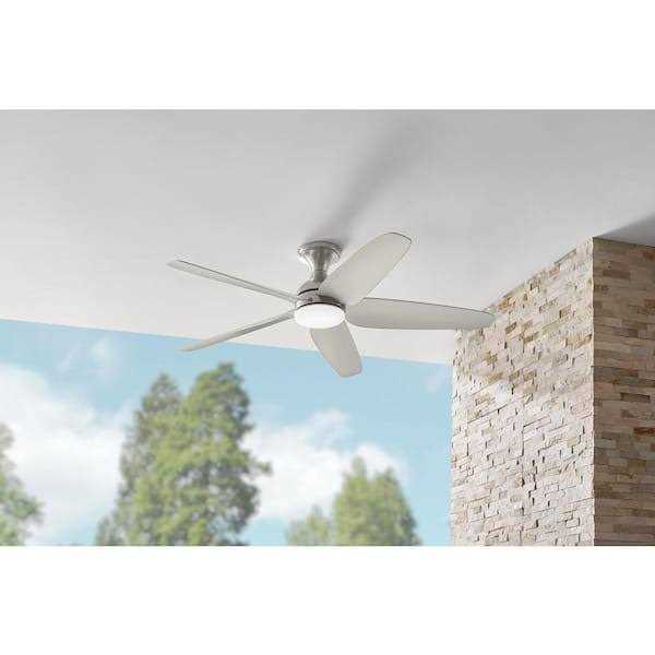 The Hampton Bay Ceva Indoor/Outdoor Brushed Nickel Ceiling Fan is the perfect addition to both indoor and outdoor spaces. Includes an integrated LED light with 3000/4000/5000 K temperature options. with the 3-speed reversible control, you can use this fan all year long.