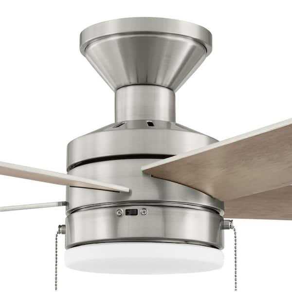Hampton Bay Caltris 52 in. Integrated LED Indoor/Outdoor Brushed Nickel Ceiling Fan with Light and Pull Chains Included