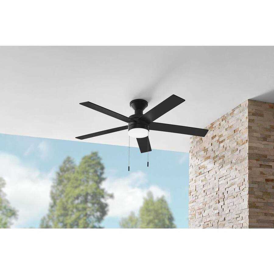 Indoor/Outdoor Matte Black Ceiling Fan is the perfect way to add a touch of style and comfort to any indoor or covered outdoor space. Enjoy the convenience of an integrated LED light and the versatility of a 3-speed reversible motor that allows you to use this fan all year round. Plus, it’s easy to operate with the included pull chains.