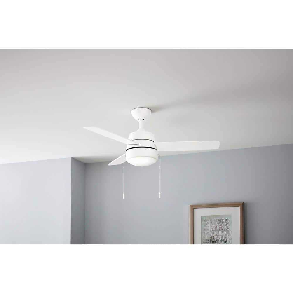 Ceiling fan has a Matte White Finish with a frosted white shade. The light kit includes a 16-Watt energy efficient LED light source for many-years of service. The motor offers 3-speeds plus a reverse feature for Winter and Summer Modes.