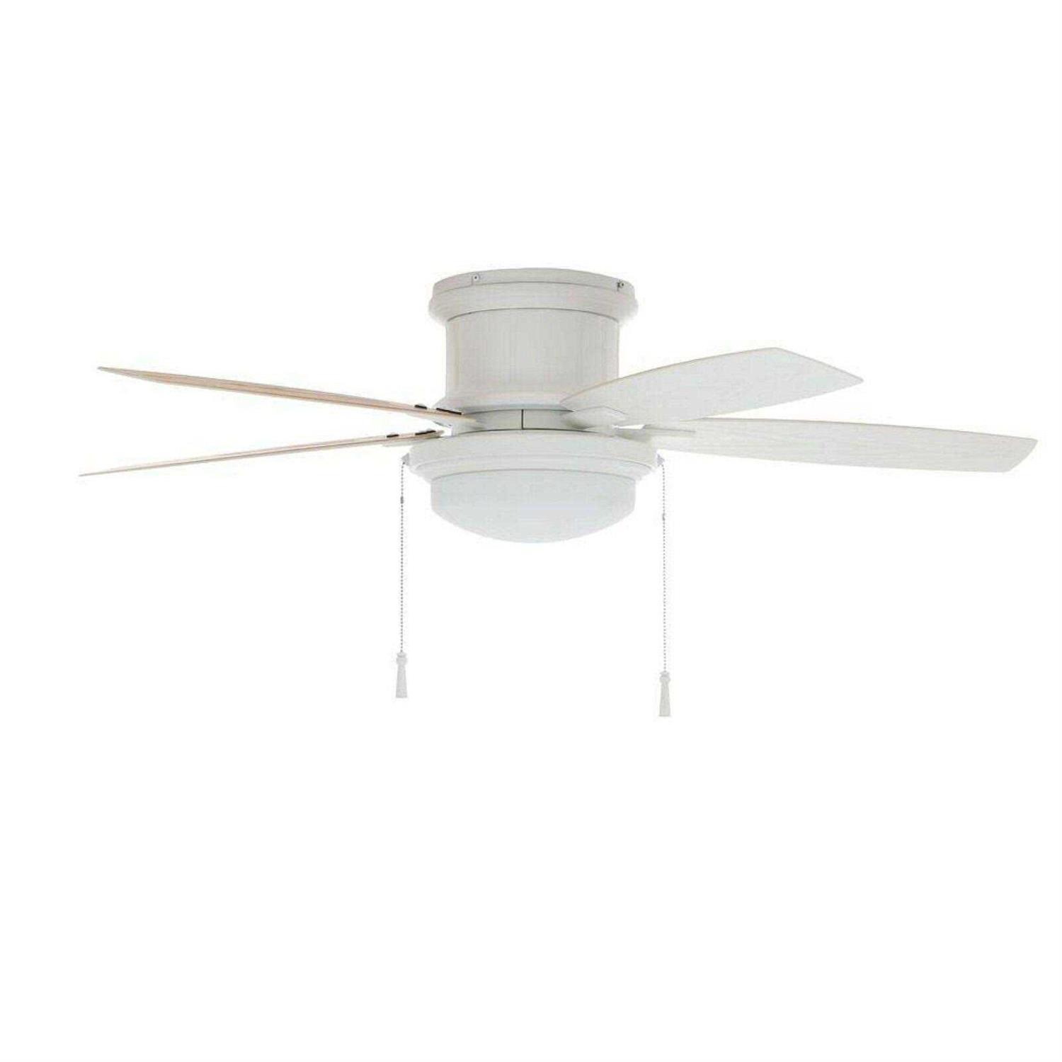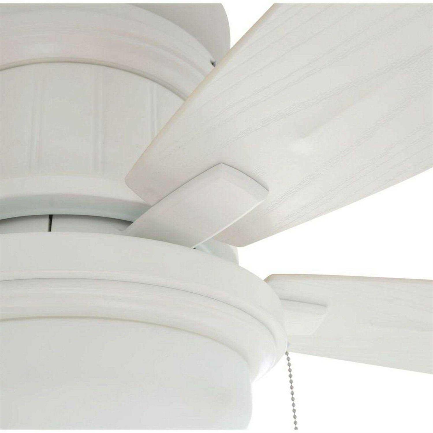 This classically styled Hampton Bay Roanoke 48 in. Indoor/Outdoor White Ceiling Fan can transform its look with a flip of the 5 reversible fan blades. The Roanoke features weather resistant blades with a 13.5° Degree pitch and flushmount installation for indoor or outdoor applications where ceiling height is of concern.