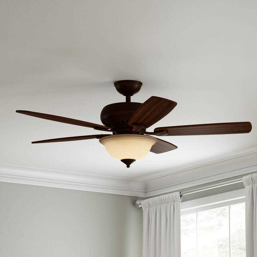 Add fan and light control to your smart home system with this Southwind Venetian Bronze Ceiling Fan from Hampton Bay. The fan has five reversible blades in distressed walnut and dark oak finishes and a frosted glass bowl light kit with two 9.5-watt LED bulbs (included). Its patented Accu-arm Technology provides easy installation and quiet, wobble-free operation. Enjoy comfortable airflow in a living room, bedroom or dining room with this smart home fan.