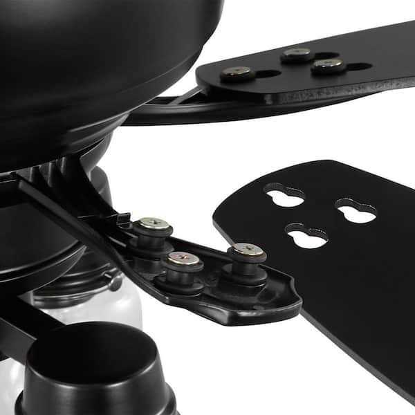 The Hampton Bay Stoneridge ceiling fan offers traditional styling and impressive, quiet performance. This fan includes three 6.5-Watt LED bulbs and clear jar style shades for maximum light output. Installation is a breeze with Quick Fit features like a slide-on mounting bracket and Quick Install blades. The rich, matte black housing is complemented with 5 reversible blades in matte black and natural oak finishes to coordinate with many of today’s indoor decor trends.