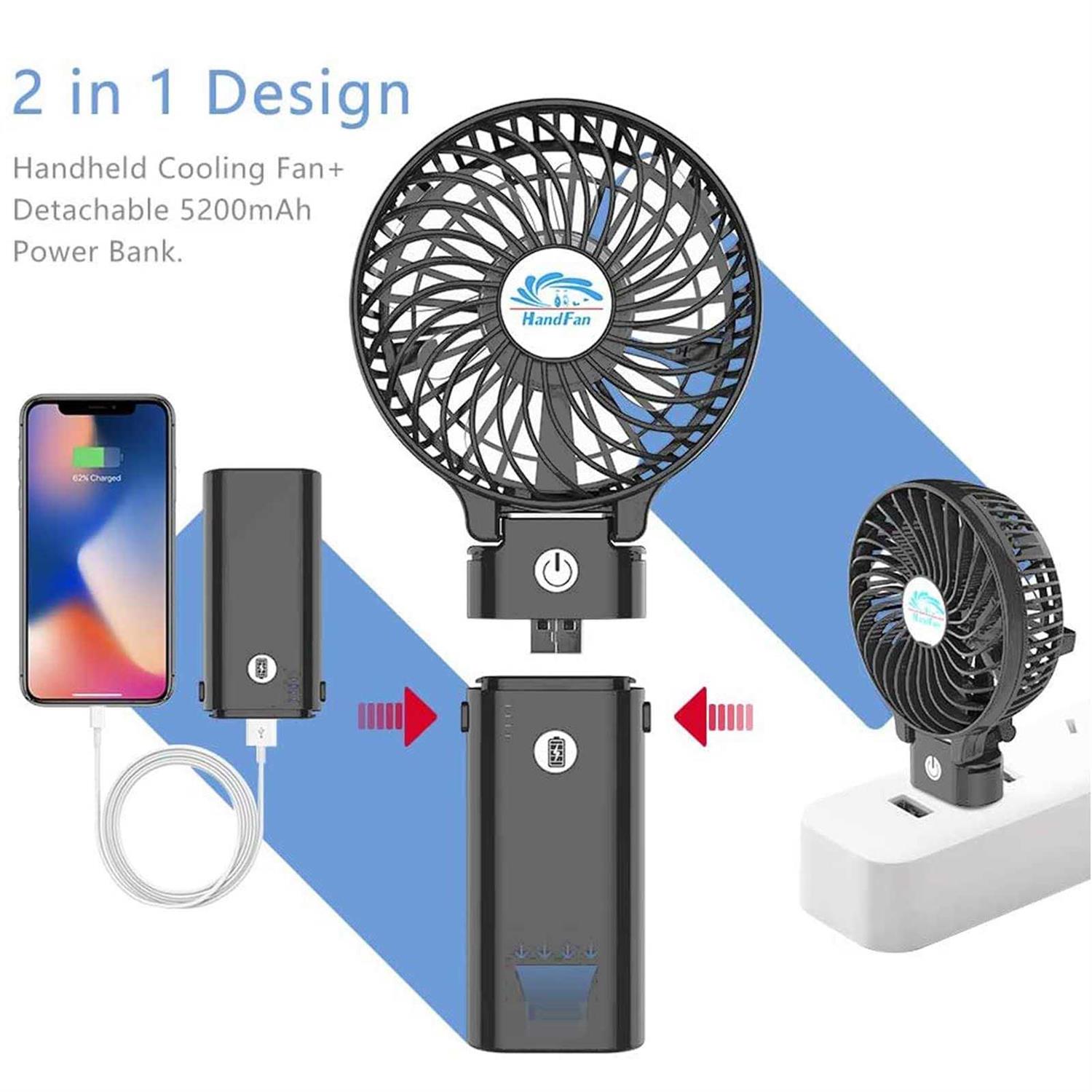 Handfan 5200mAh Portable Handheld Fan, Foldable Personal Fan, Battery Operated Rechargeable Fan, Detachable Handle Design, Small