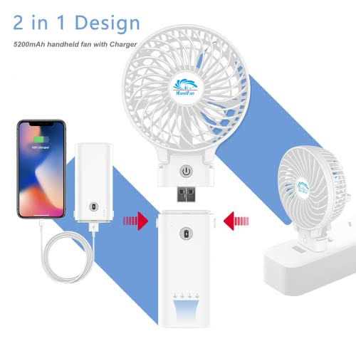 Handfan 5200mAh Portable Handheld Fan, Foldable Personal Fan, Battery Operated Rechargeable Fan, Portable Charger Design, 3 Speeds,5-20H Working