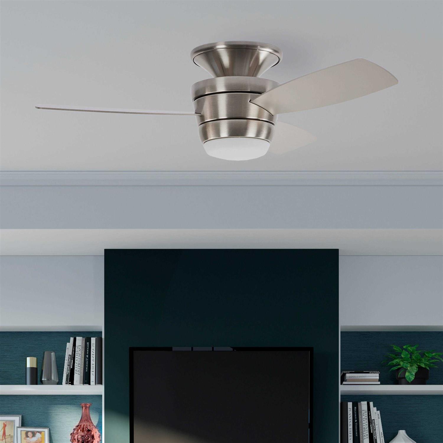 Harbor Breeze Mazon 44-in Brushed Nickel LED Indoor Flush Mount Ceiling Fan with Light Kit and Remote (3-Blade)