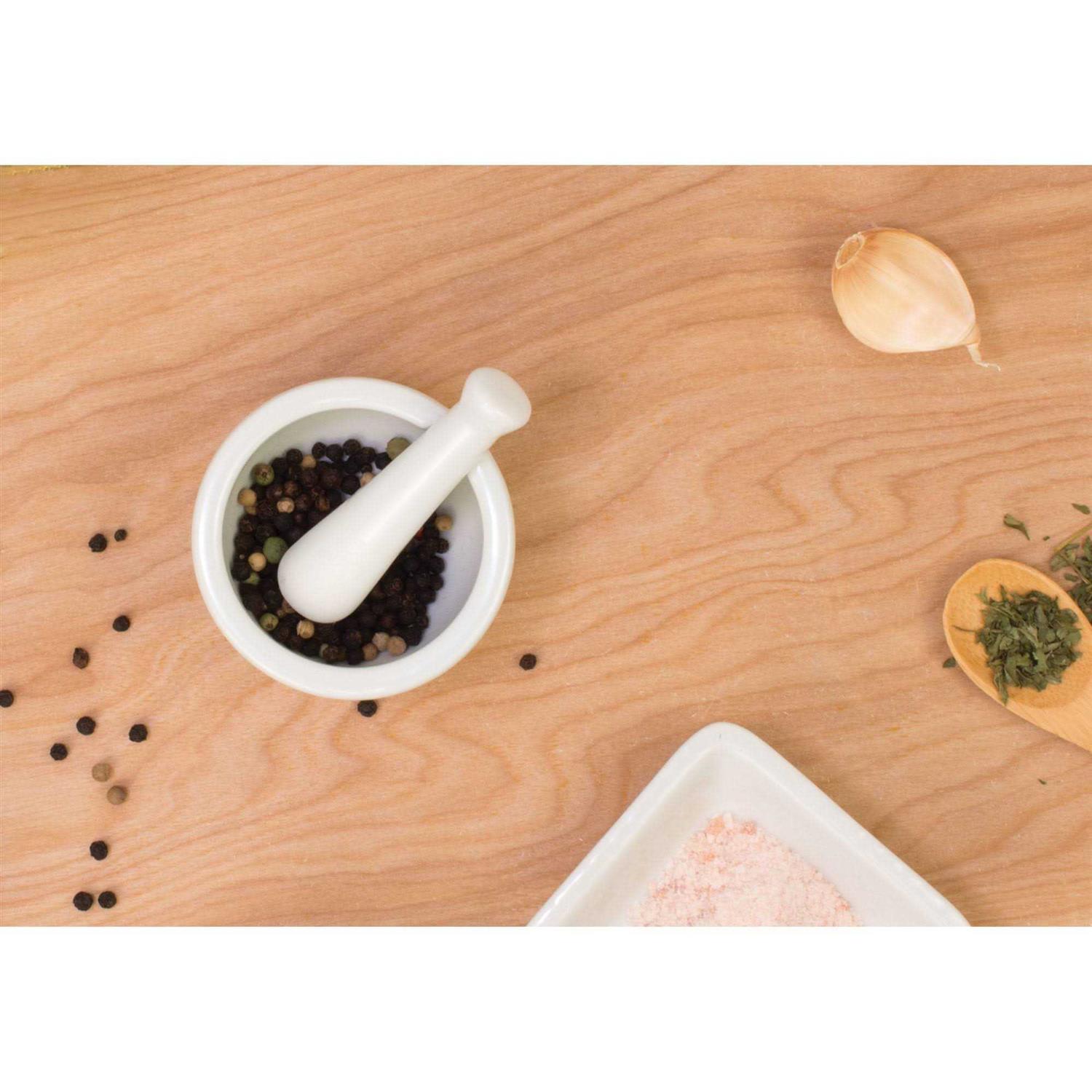- Made from fine-quality porcelain; complements any decor; mortar 2.75 x 1.5-inches; pestle 2.875-inches