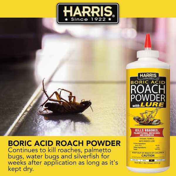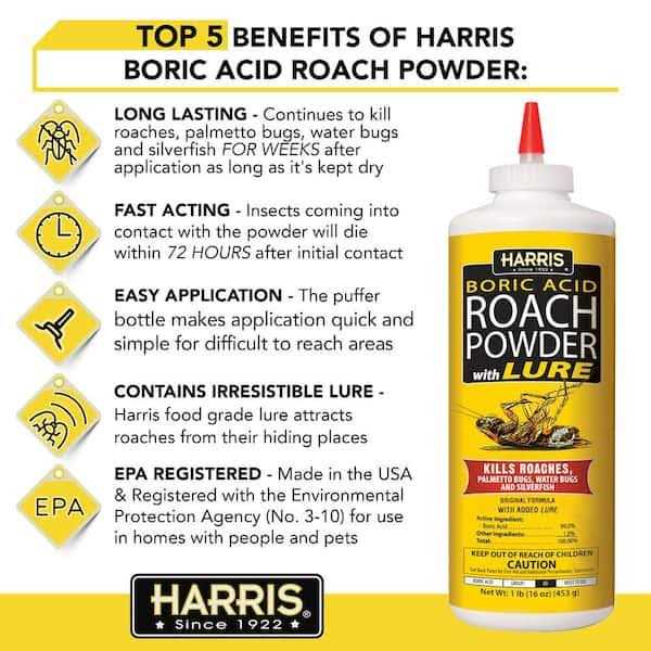 Boric Acid Roach Powder will help rid your home of roaches and other pests. Powder also kills palmetto bugs, water-bugs and silverfish. Insects coming into contact with the powder will die within 72-hours after initial contact. for commercial and residential use.