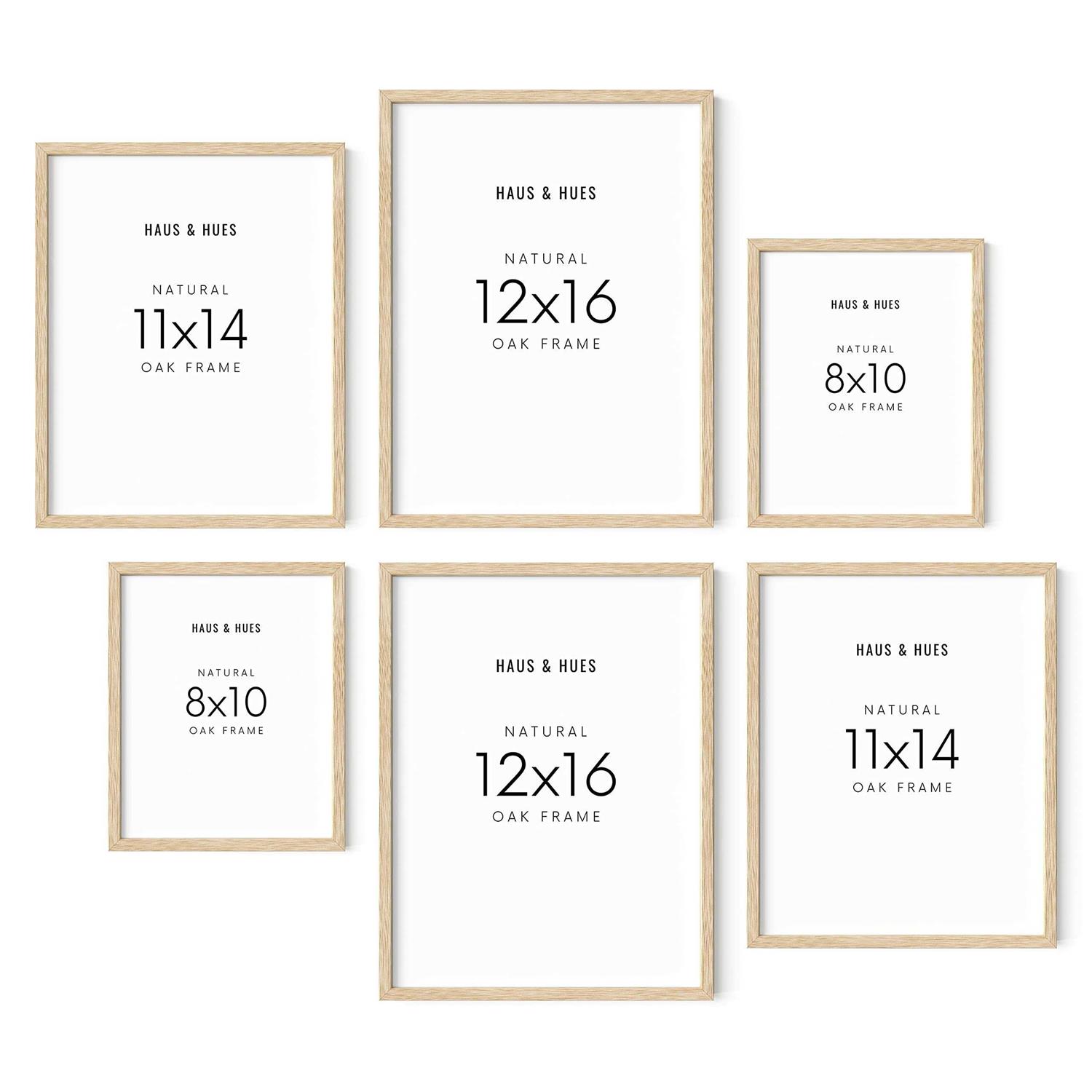 GALLERY WOOD FRAME SET: Frame your favorite prints and photographs with Haus and Hues wall gallery frame set. Mixing and matching frames of different sizes allow you to customize your frame set to fit any small or large space. All of our frames can be hung vertically or horizontally for even more customization. VARIETY PICTURE FRAME PACK: Whether you place the frames along your staircase, in your office, living room, or bedroom, Haus and Hues gallery frames are the easiest way to fill up your walls with your unique art collection or personal photos. The set includes two 8×10 frames, two 11×14 frames, and two beige 12×16 frames. PREMIUM QUALITY: Our Pennsylvania solid wood oak frames will add the finishing touch to your art. The gallery wall set is equipped with plexiglass covered by the protective film and two metal hangers for easy horizontal or vertical hanging. A TIMELESS GIFT: A curated gallery wall will make a great DIY project gift for friends and family. Give your loved ones these gallery wall frames for a birthday, housewarming, graduation, Christmas, or any special occasion. A gallery of frames is a perfect way to add color and a personal touch to any space.
