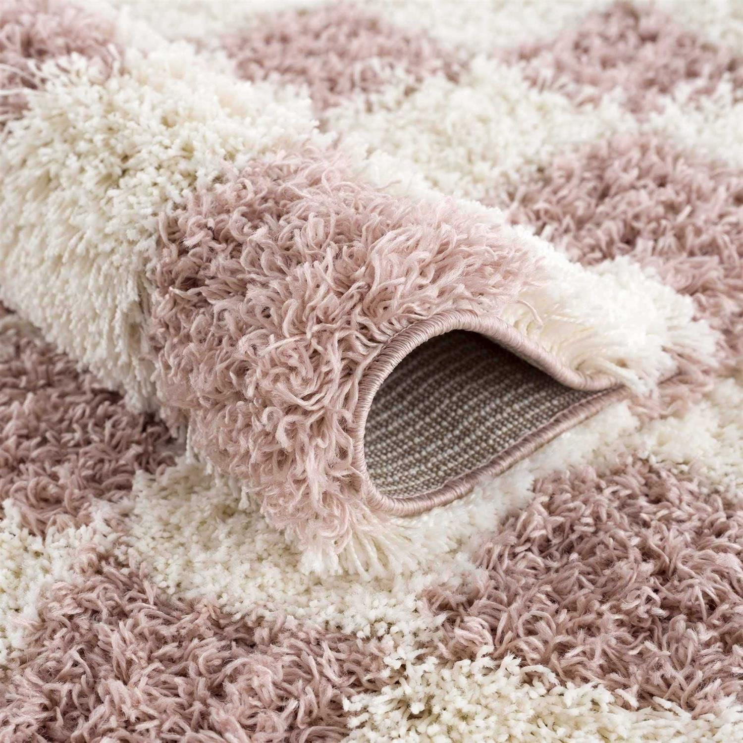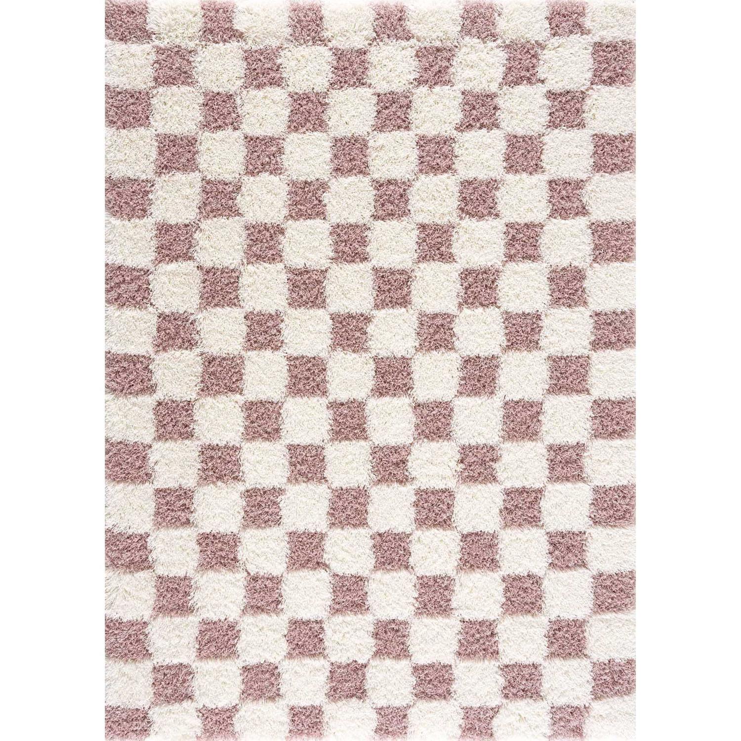Hauteloom Atira Pink Checkered Area Rug | Pink Checkered Shag Rug